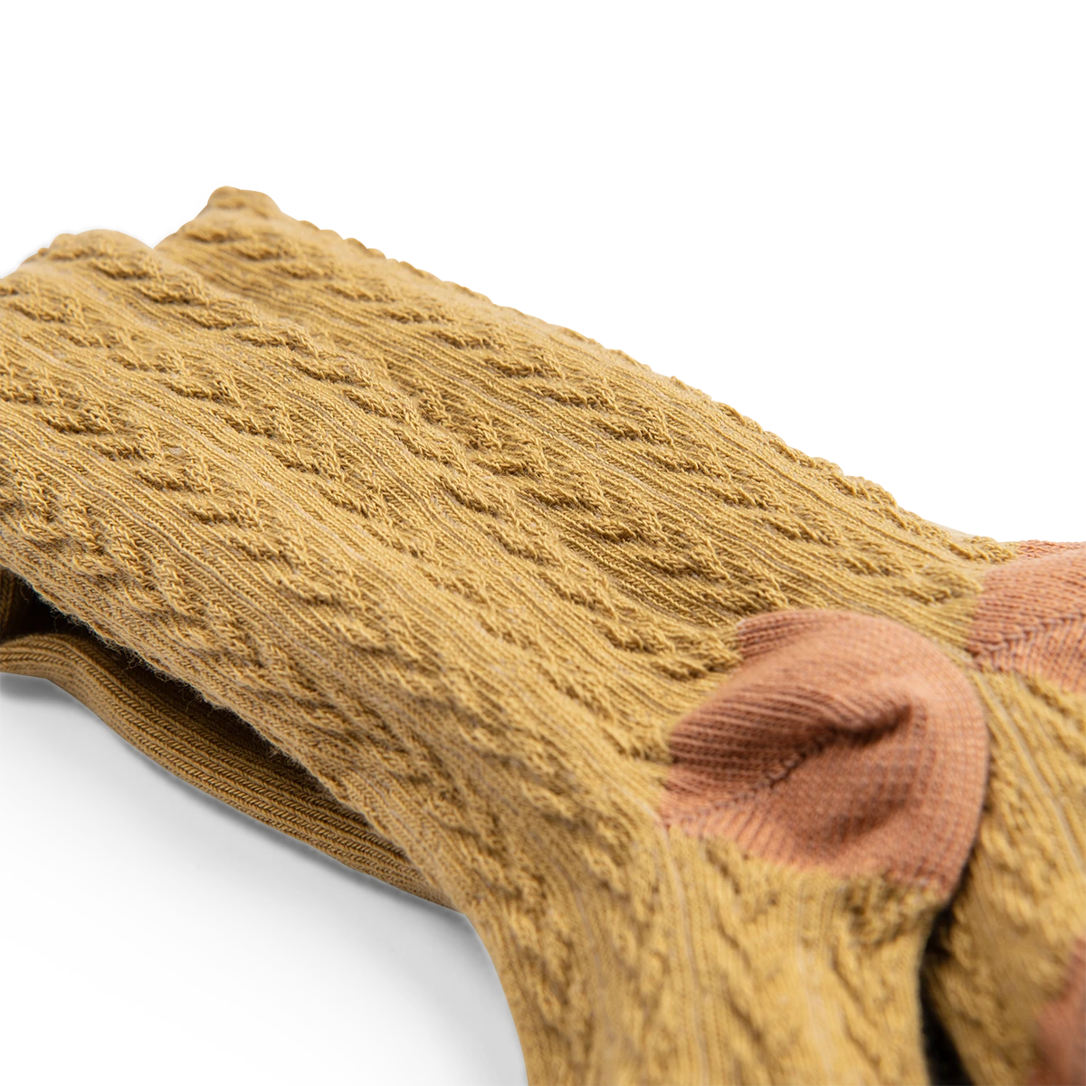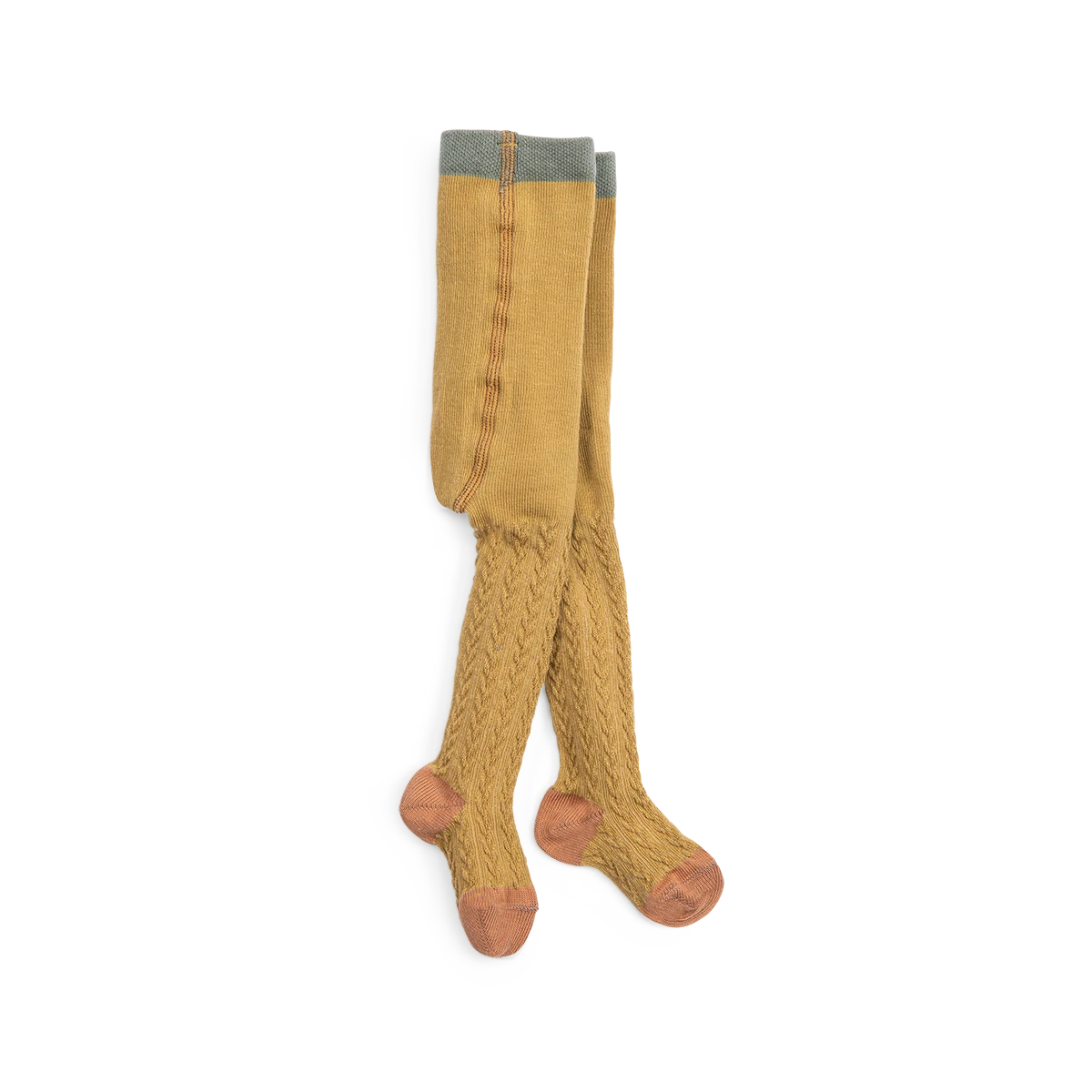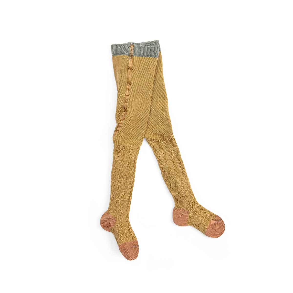 Collants torsades de fabrication française. Taille élastiquée, pointes, talons et ceinture contrastés.