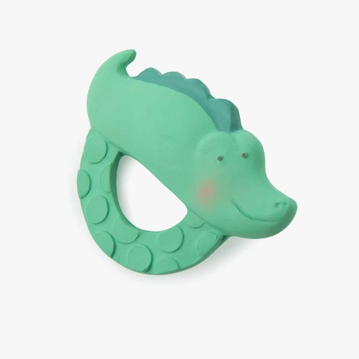 Anneau en caoutchouc 100% naturel, issu de la sève d’Hévéa, avec le crocodile farceur de la savane ! Pour soulager les dents de bébé ou jouer dans le bain, il n’a ni trou ni sifflet pour éviter l’accumulation de saletés à l’intérieur.