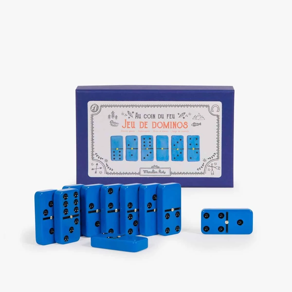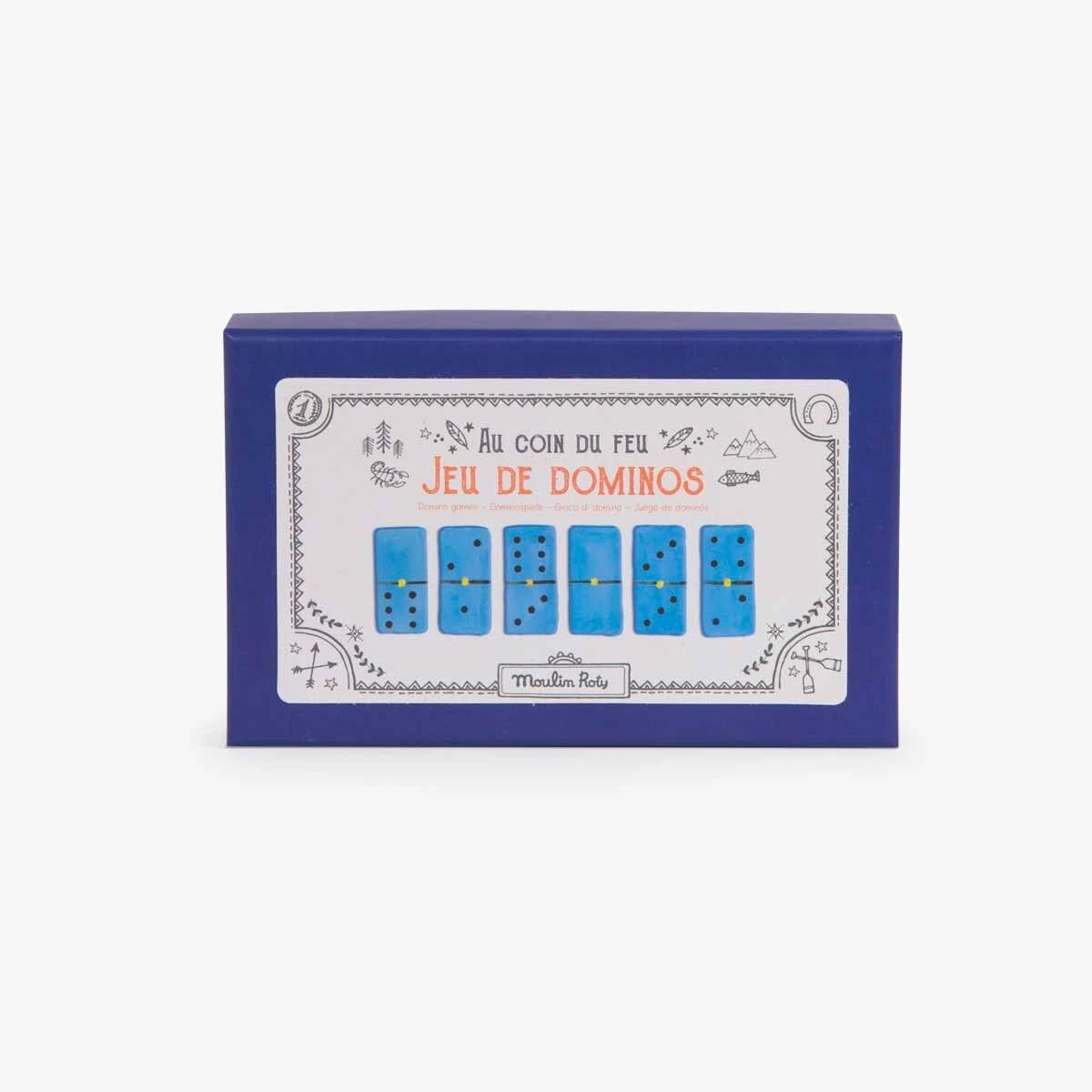 Un jeu à emmener pour la veillée en forêt : le classique domino avec 28 pièces bleues pour s’entraîner à observer, compter et associer les chiffres pendant de longues parties !