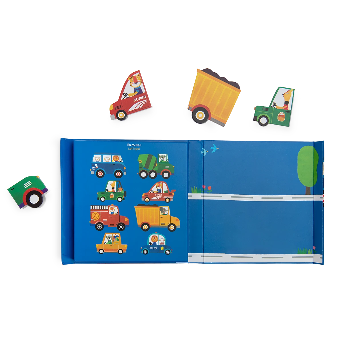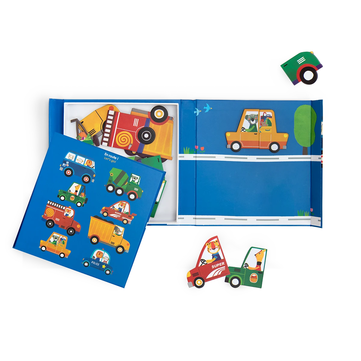 Voiture de police, camion de pompiers, camion toupie … avec aux commandes Les Popipop ! Un jeu éducatif présenté dans une boite coffret magnétique pour s’amuser à recomposer les 8 véhicules colorés composés de 2 ou 3 pièces chacun à l’aide des 20 magnets.