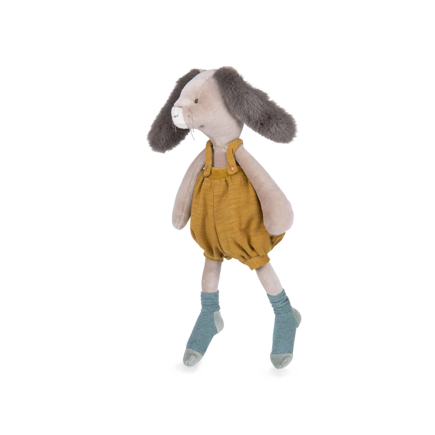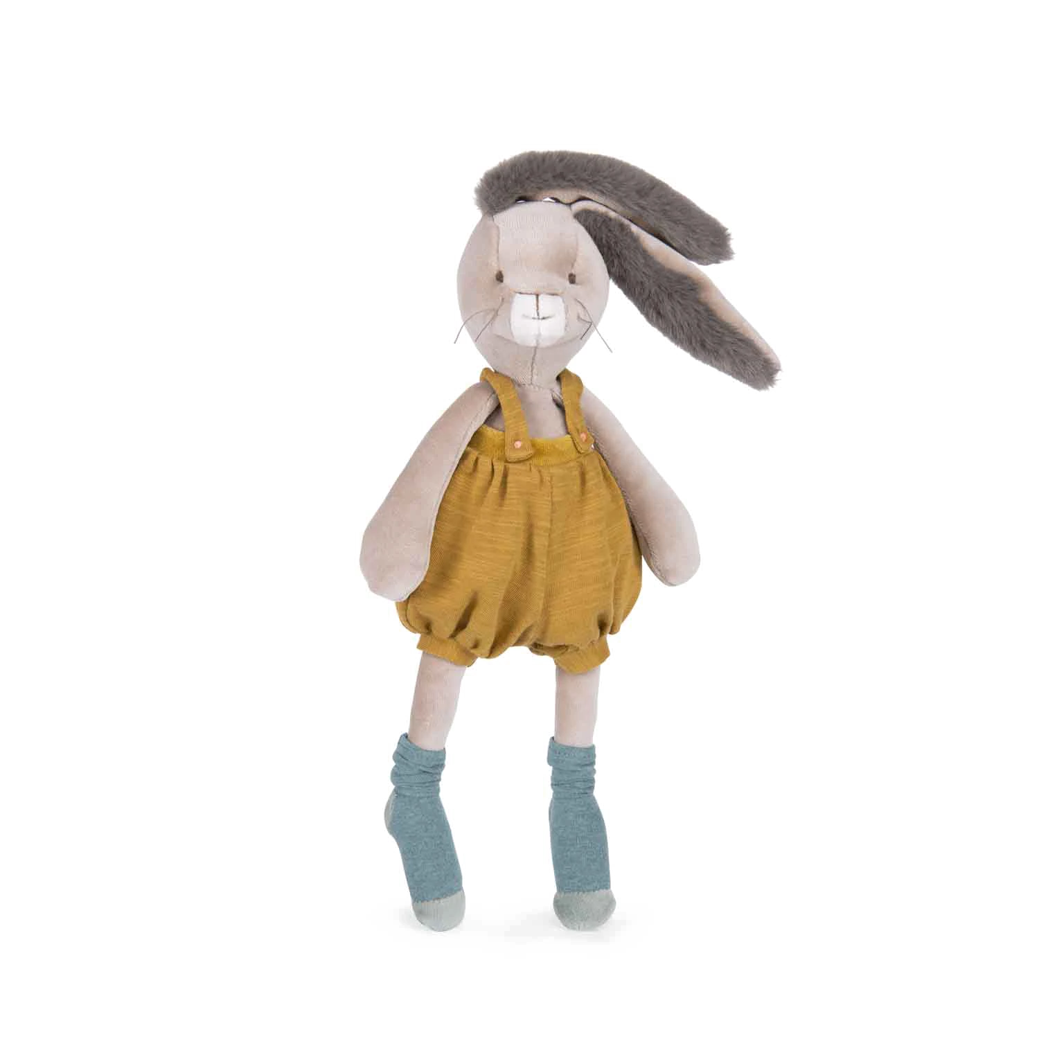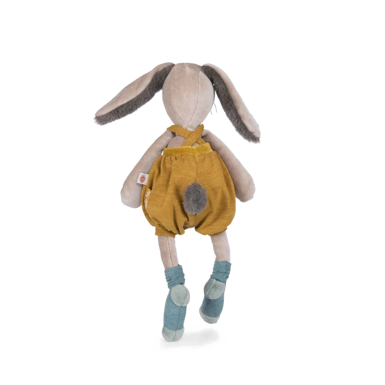 Avec sa frimousse à moustaches et ses grandes oreilles toutes douces, cet adorable lapin à la salopette ocre ne demande qu’à faire des câlins ! Compagnon de jeu la journée et doudou protecteur la nuit, il accompagnera bébé.