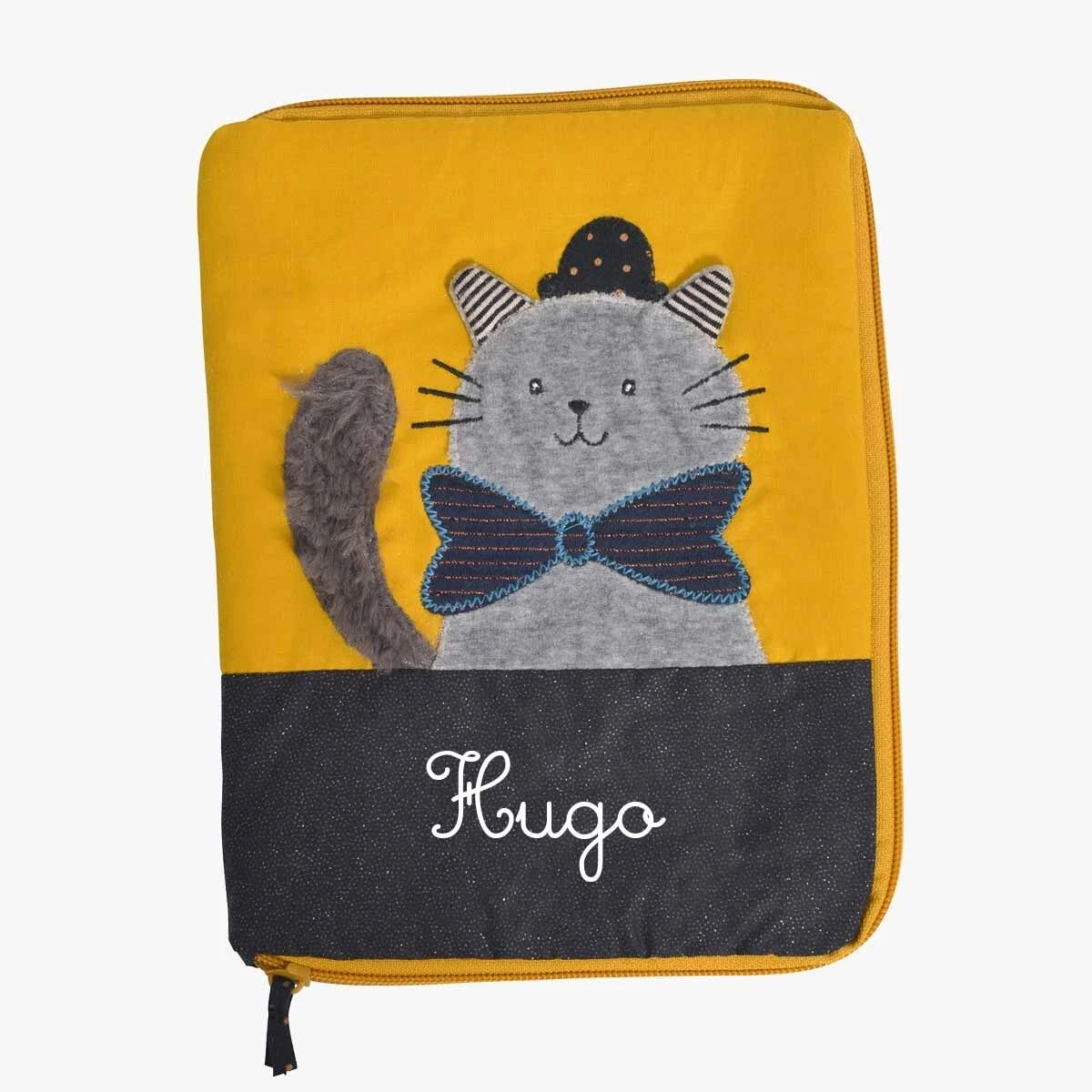 Pochette de protection de carnet de santé avec fermeture zippée, reprenant le chat gris et amusant de la gamme.