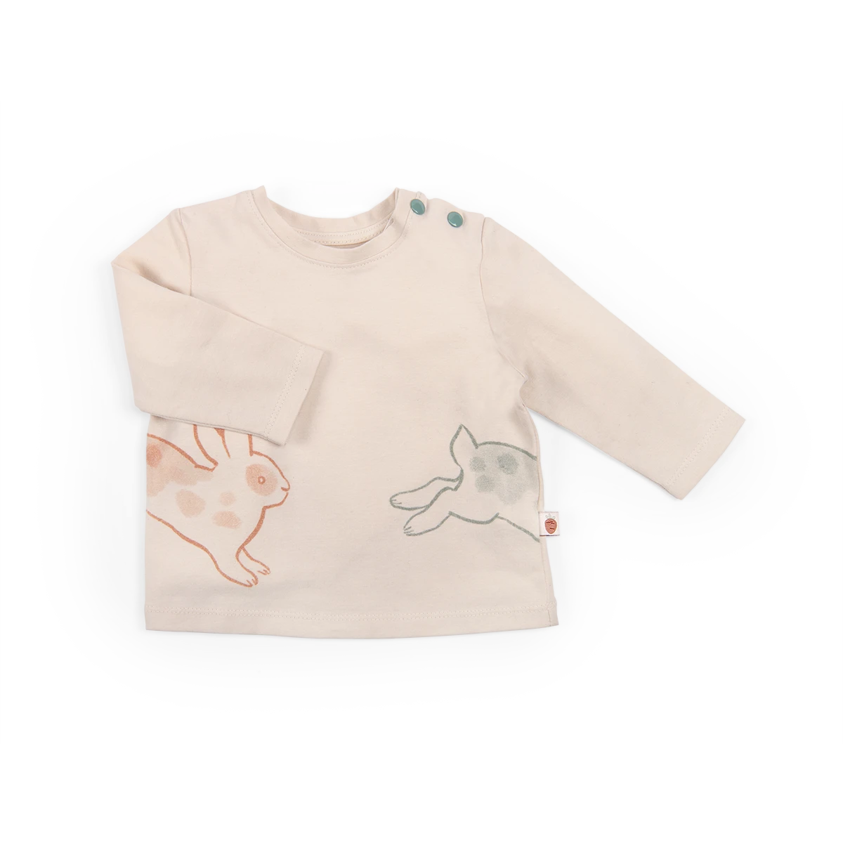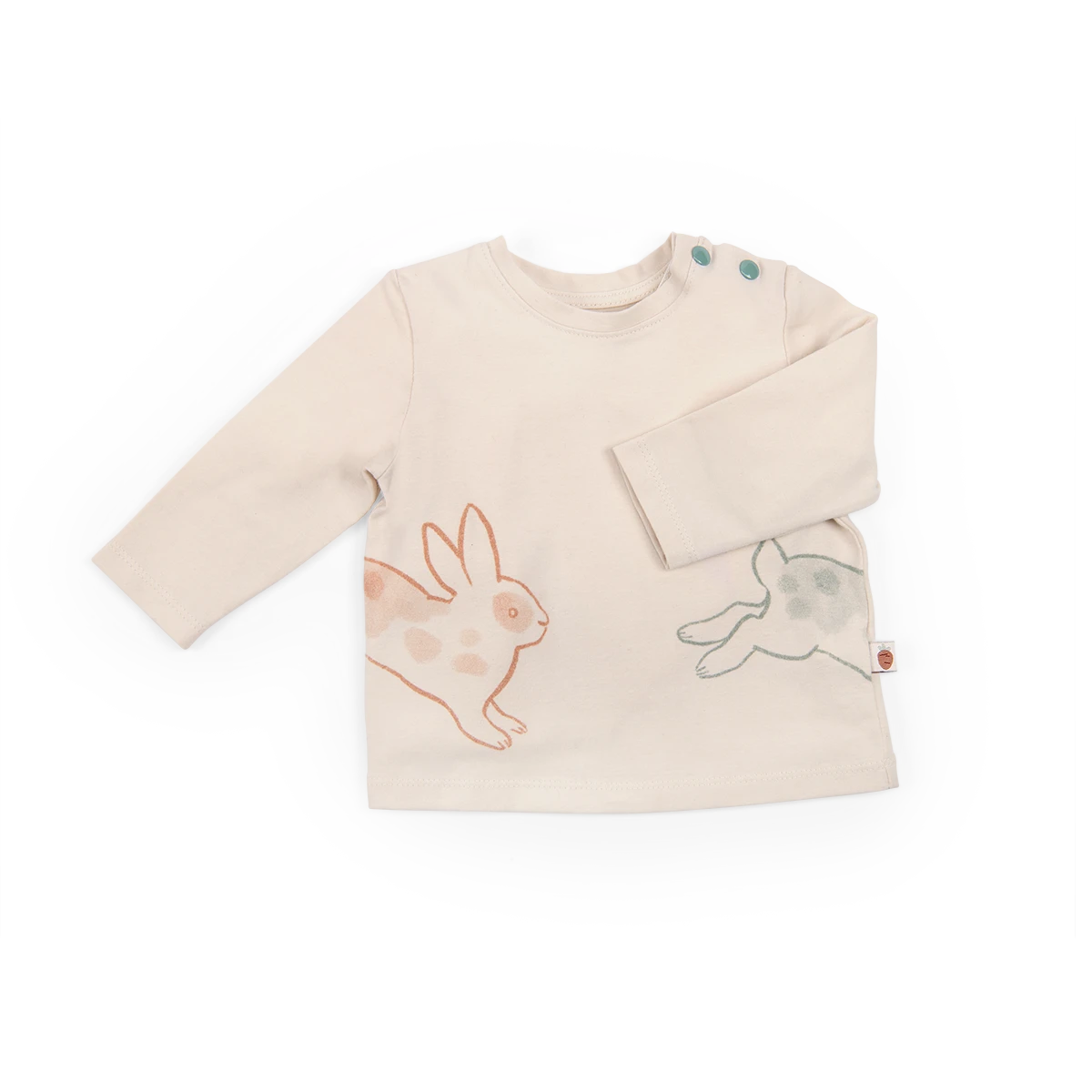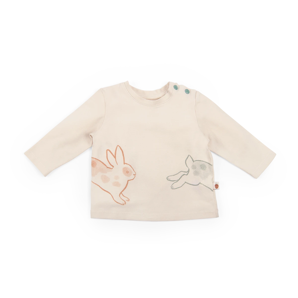 T-shirt crÚme en jersey de coton avec imprimé lapins. Boutonspression contrastés aux épaules. Finition carbone et intérieur gratté.